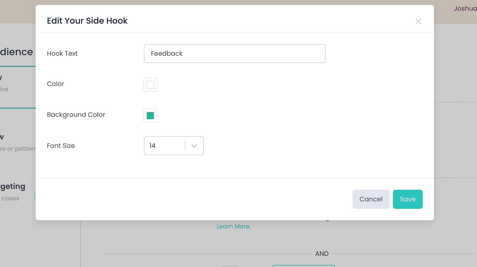 Once you will turn on the Side Hook, you can also edit the look and feel of the hook like color, font, etc. as shown below: