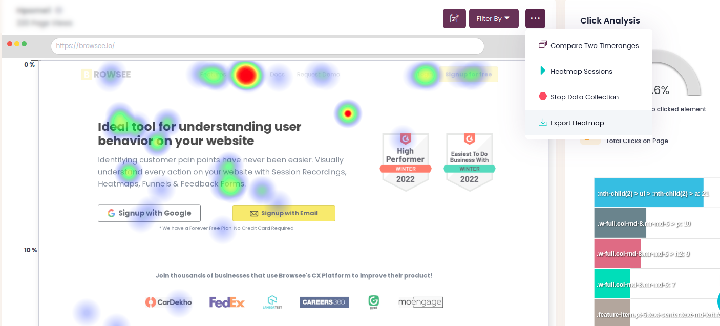 * Always on Heatmaps -  This makes more sense if you have medium traffic and the frequency of page change is quite high. With always-on heatmaps, you can compare your two heatmaps on two different time ranges.